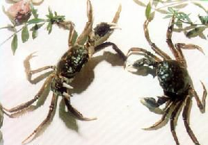 中华绒螯蟹是一种经济蟹类,又称河蟹、毛蟹、清水蟹、大闸蟹。为中国久负盛名的美食。其螯足用于取食和抗敌,掌部内外缘密生绒毛,绒螯蟹因此而得名。杂食性动物,鱼、虾、螺、蚌、蠕虫、蚯蚓、昆虫及其幼虫等均可作为大闸蟹的动物性饵料。